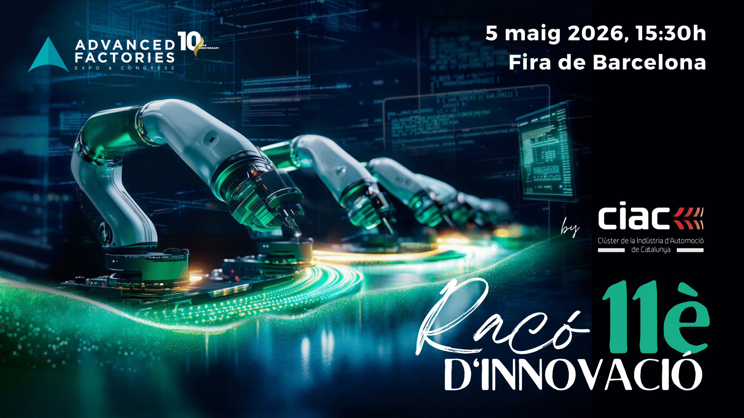 Este año, además, celebramos un hito muy especial: 10 años de Advanced Factories, el evento que ha impulsado la revolución tecnológica de nuestras plantas productivas. Una década siendo el punto de encuentro imprescindible para la industria avanzada… y el escenario perfecto para dar visibilidad a las soluciones que marcarán el próximo salto del sector.